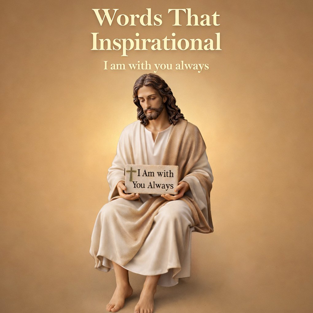 Jesus Holds a tablet inscribed with "I Am with You Always" A powerful scripture to banish anxiety and bring courage to your day.